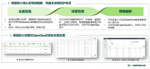 绿盟科技紧密结合实时热点和产品主流演进方向,打造一体化场景解决方案,覆盖OpenClaw全流程防护方案和IPv6场景化解决方案。在OpenClaw方案方面,构建事前、事中和事后全流程防护体系;在IPv6场景化方案方面,构建初期、中期、后期体系化改造方案,继而打造一体化 “天窗场景”解决方案,持续保障业务可持续性访问。