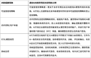 表3.3:AI风险缓解措施示例。所列方法旨在同时支持不同类型风险的缓解,包括恶意利用风险、运行异常风险和系统性风险。通用AI风险管理尚处于起步阶段,并非所有方法都适用于每位AI开发人员或部署人员。