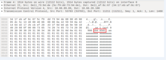 3.  检测set命令后面的bytes字段值(如下图中标注的1048501),是否超过设定的阈值,如果是,则可以怀疑该报文存在异常。