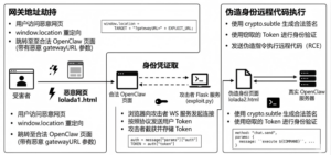 核心攻击脚本包括一个单python文件(exploit.py)的Flask服务,以及html模版(核心包括触发OpenClaw重定向的页面lolada1.html与执行远程代码的页面lolada2.html),核心内容包括网关地址劫持、身份凭证窃取、伪造身份远程代码执行三部分