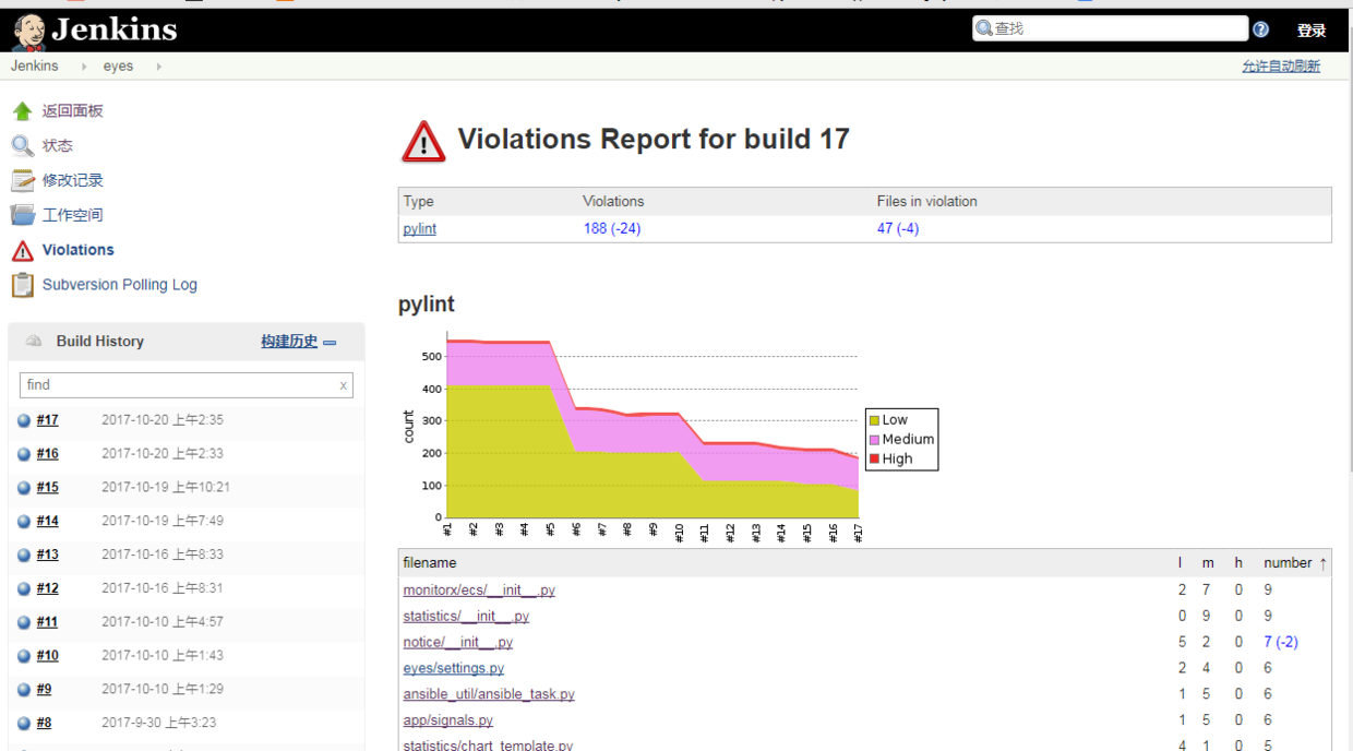 jenkins插件Violations支持pylint、jslint等结果的显示。