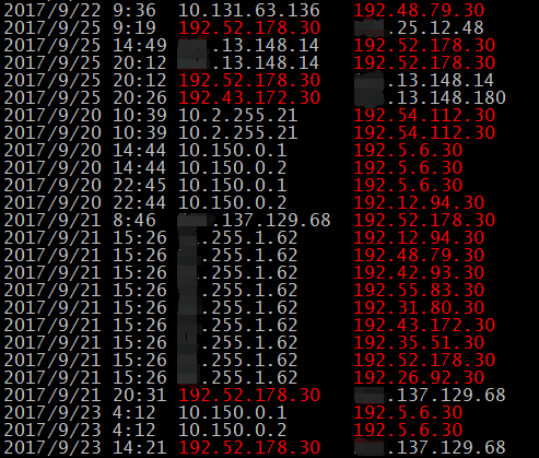 那除去这些针对默认dns服务器的连接,是否可以捕获到一些具有攻击性质的IP地址呢。结果之前数据采集和自动化分析。地址信息如下图: