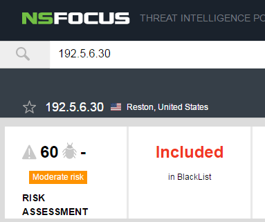 针对已经掌握的部分恶意IP从绿盟威胁情报中心对该IP做了进一步的确认和跟踪,如下图