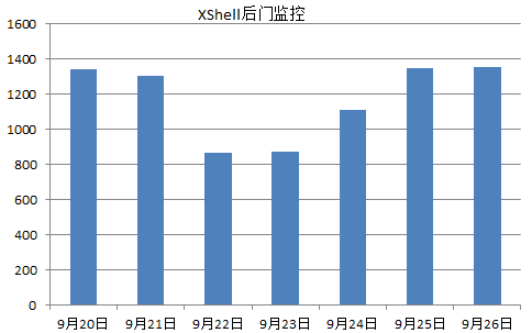 下图是以小时单位针对在9月20日到9月26日之间的xshell后门访问情况。