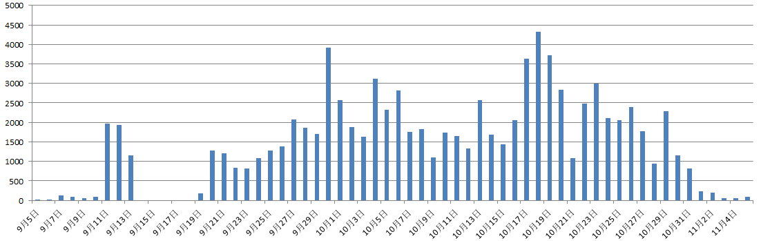 从上图可知即使在xshell补丁已经发布N天之后,针对9月20日到9月26日之间的一个监控情况。从上图可知到目前为止还有大量机器存在该后门。从上图中看,9月22日,23日两天后门活跃程度明显下降,而到24日之后又明显回升。究其原因在于,xshell属于终端模拟软件,一般使用此软件的用户多为有一些计算机专业知识人员,从事计算机相关的工作。9月22日,23日为刚好为周五,周六;基本是休息状态,此时用户的活跃度也就不高。在图中显示相对较低,而在工作日,随着用户使用该软件的数量增长。其监控的结果也就越加明显。